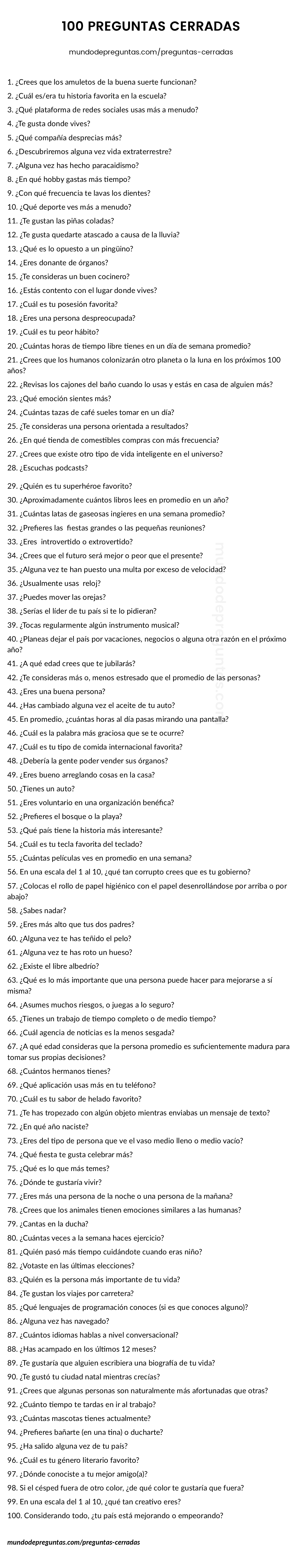 Primero, veamos qué son las preguntas cerradas, luego podemos ver algunos ejemplos, y finalmente, llegaremos a una lista colosal de preguntas cerradas.