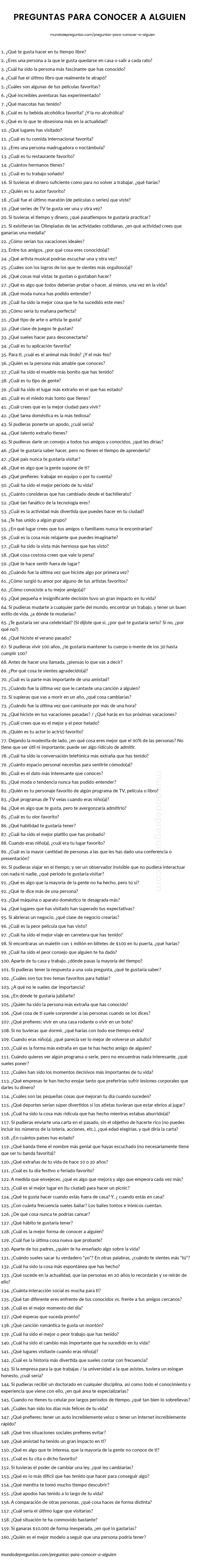 Y aquí está la imagen de todas las preguntas para conocer a alguien:
